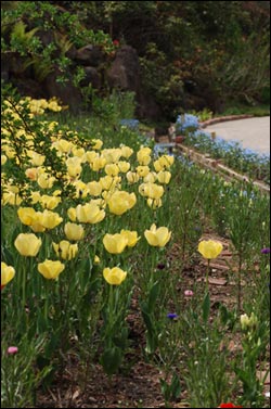 チューリップやネモフィラなどがきれいに植えられています。広い庭っていいなぁ・・・。