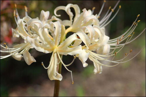 白いヒガンバナが咲いていました。少しクリームがかっててわたしの好きな色です。