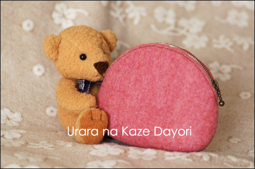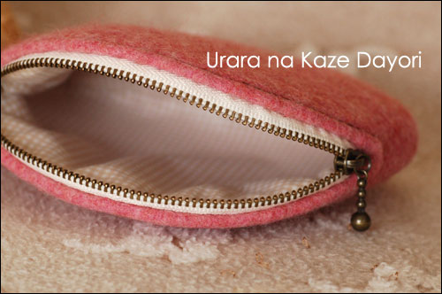 羊毛フェルトでファスナーつきのポーチを作りました。