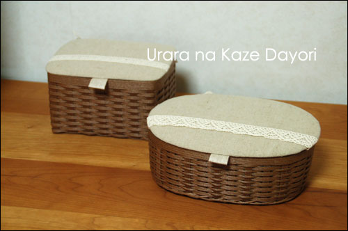 四角のが前回作ったカゴです。今回は形違いのおそろいです。